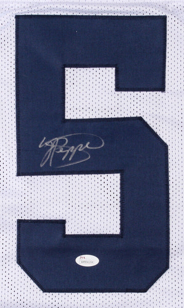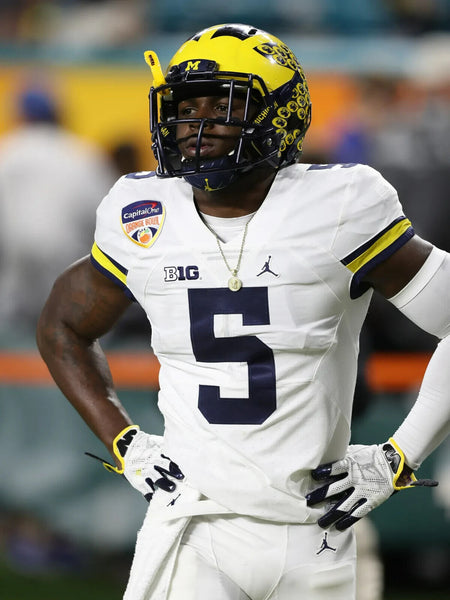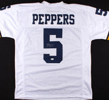 Custom on-field style jersey. Everything sewn on, size XL. Hand-signed in silver paint pen by Jabrill Peppers. The lot / autograph(s) includes an official James Spence Authentication (JSA) hologram for authenticity purposes. The signing of this item was witnessed by JSA.Authentication: JSA Hologram Custom on-field style jerseys are a more affordable option for autograph seekers. These jerseys do not have any brand name or tags and are made in the Philippines. They feature stitched on names and numbers and are made to look very similar to the on-field jerseys that the players wear. These custom jerseys are very commonly used in the memorabilia industry.