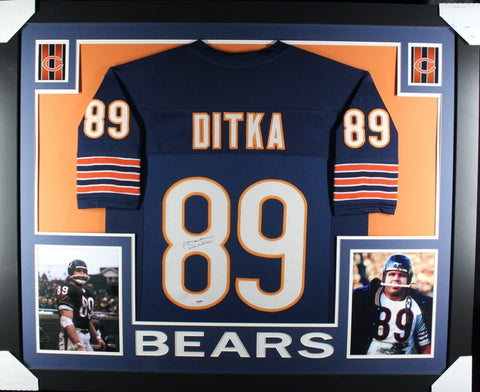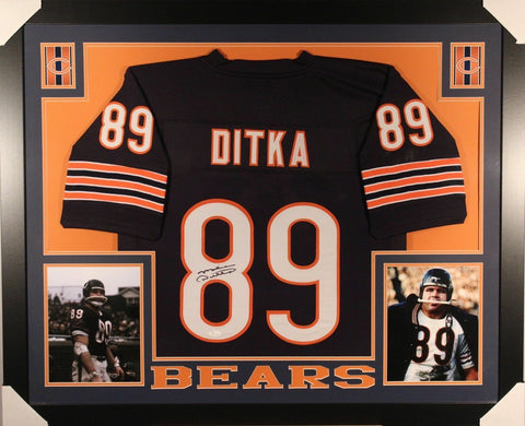 MIKE DITKA (Bears navy SKYLINE) Signed Autographed Framed Jersey Beckett