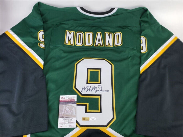 Custom on-ice style jersey. Everything is sewn on, size XL. Has been hand-signed by Mike Modano (HOF).The autograph includes an official James Spence Authentication (JSA) hologram and matching COA for authenticity purposes. The signing of this item was witnessed by JSA.Authentication: JSA COA