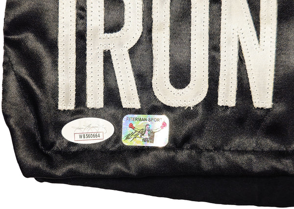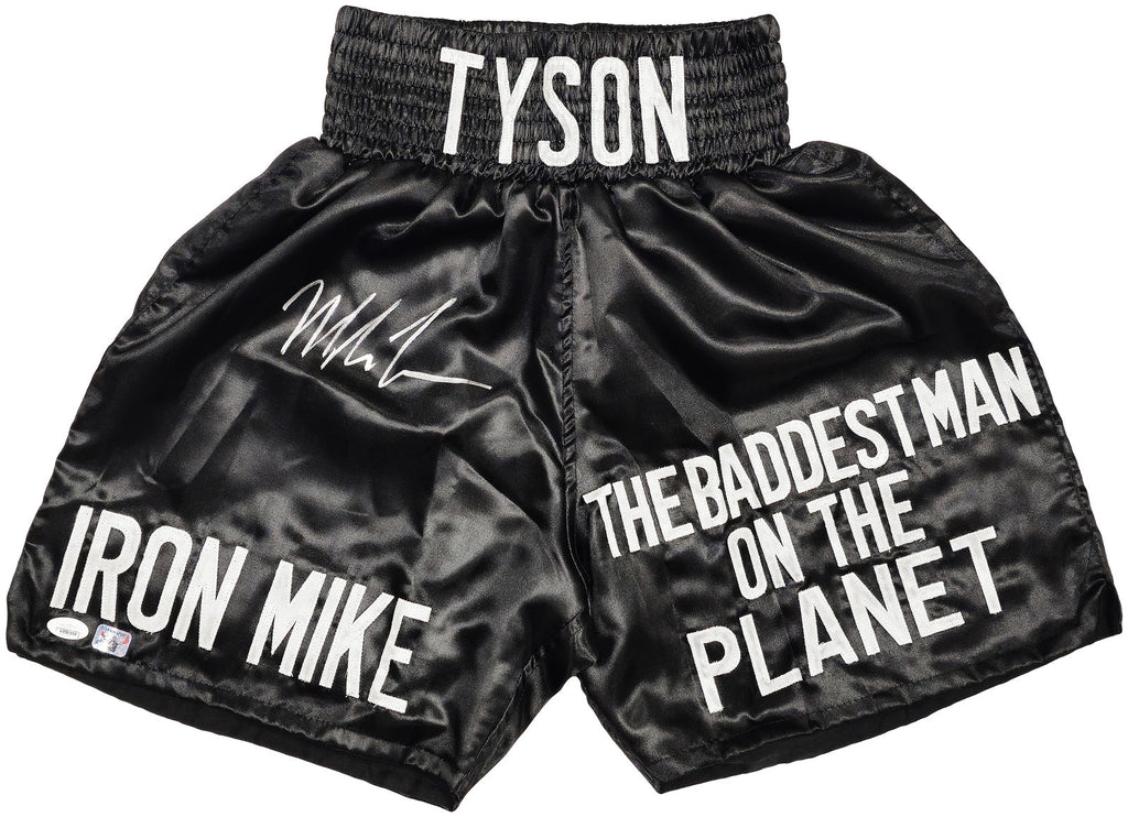 This is a pair of Black Boxing Trunks that has been hand signed by Mike Tyson. This item has been certified authentic by JSA and comes with their tamper-proof hologram and matching certificate of authenticity.