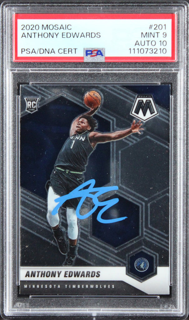 This Autographed Card Graded Mint 9! Auto Graded Gem Mint 10! 2020 Panini Mosaic #201 Rookie Card has been Personally Signed by Anthony Edwards of the Minnesota Timberwolves. This item is 100% Authentic, it comes slabbed and authenticated by PSA/DNA. We have multiples of this same item. While the photographs are representative of this item, the size and placement of the signature may vary. Each item is hand signed, therefore, each autograph is unique.