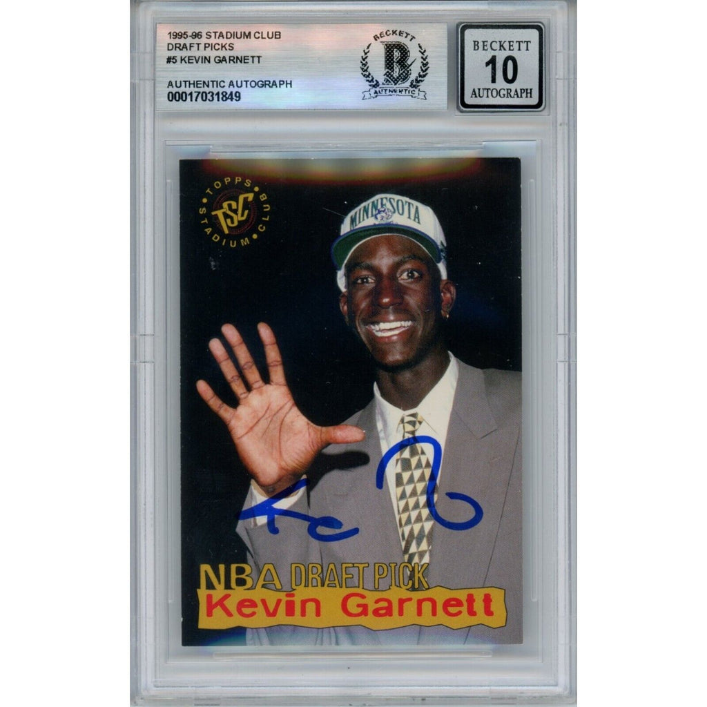 The number in the listing title is just an inventory sku for our records and is not the authentication number. The item pictured is a stock photo unless otherwise noted. This is a Minnesota Timberwolves 1995 Stadium Club #5 Slabbed Trading Card that was personally autographed by Kevin Garnett. Includes a certificate of authenticity from Beckett Authentication Services (BAS) and Denver Autographs.FREE SHIPPING within the USA on orders over $10!