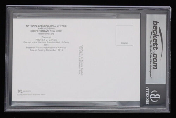 Hall of Fame Plaque postcard has been hand-signed by Rod Carew (Minnesota Twins, California Angels, HOF).The item / autograph(s) has been authenticated and encapsulated by Beckett (BGS) for authenticity purposes.Authentication: BGS Encapsulated