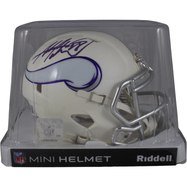 The number in the listing title is just an inventory sku for our records and is not the authentication number. The item pictured is a stock photo unless otherwise noted. This is a Minnesota Vikings 2024 Alternate Mini Helmet that was personally autographed by Adrian Peterson. Includes a certificate of authenticity from Beckett Authentication Services (BAS) and Denver Autographs.FREE SHIPPING within the USA on orders over $10!
