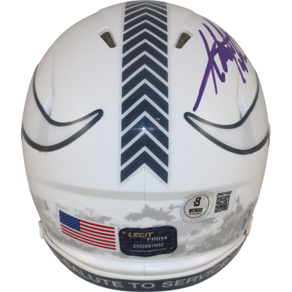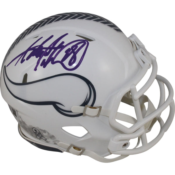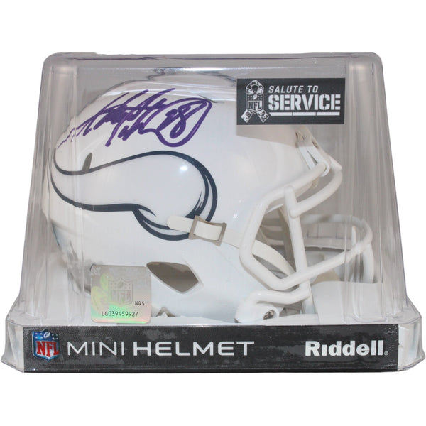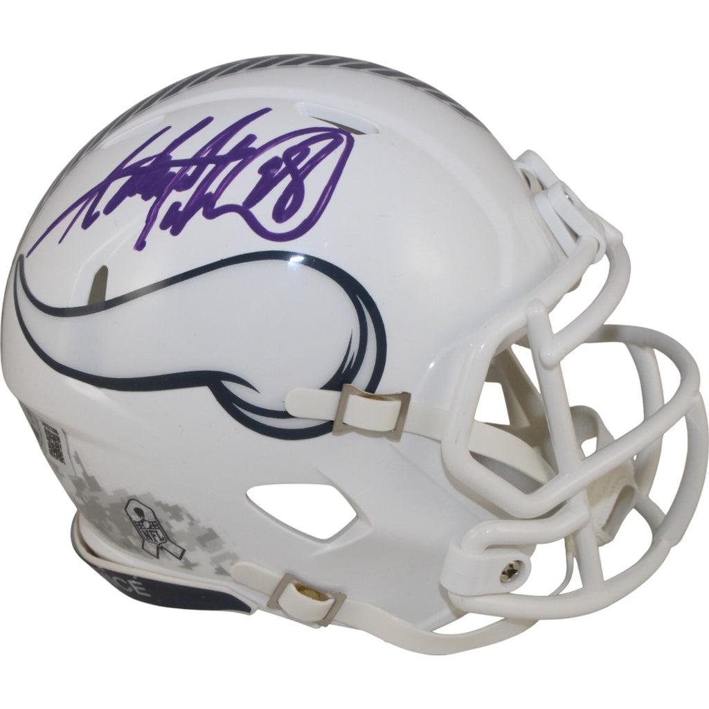 The number in the listing title is just an inventory sku for our records and is not the authentication number. The item pictured is a stock photo unless otherwise noted. This is a Minnesota Vikings 2024 Salute to Service Mini Helmet that was personally autographed by Adrian Peterson. Includes a certificate of authenticity from Beckett Authentication Services (BAS) and Denver Autographs.FREE SHIPPING within the USA on orders over $10!