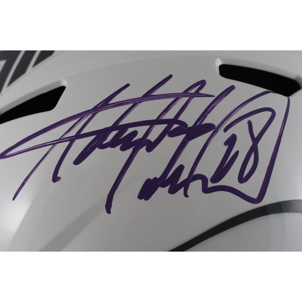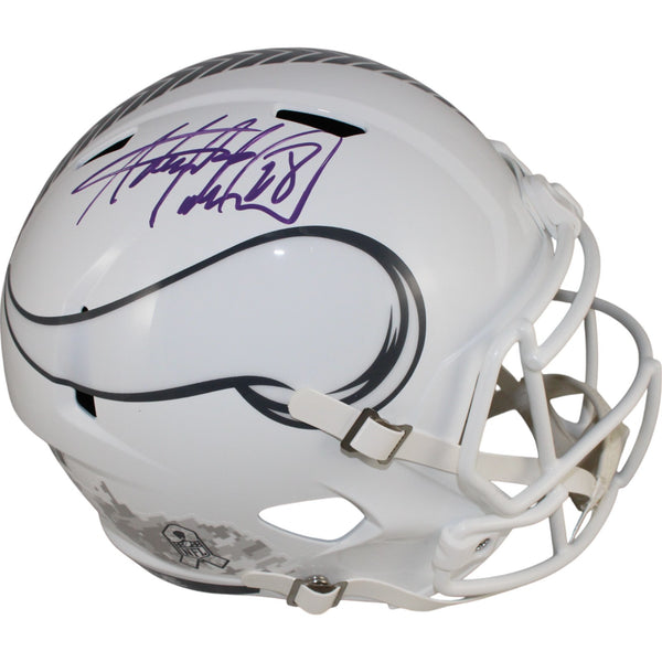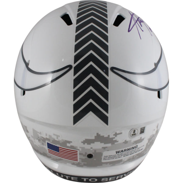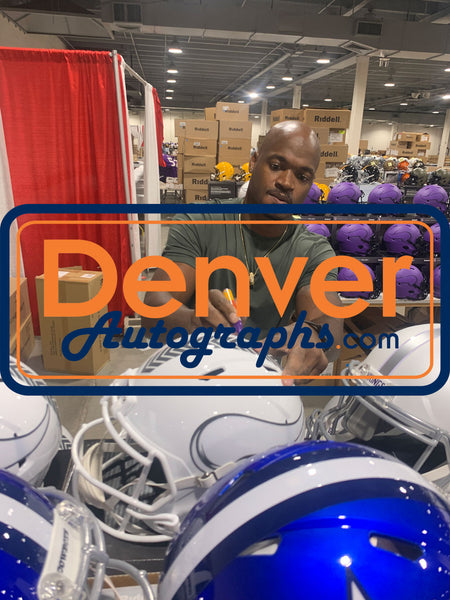The number in the listing title is just an inventory sku for our records and is not the authentication number. This is a stock photo, unless otherwise noted. This is a Minnesota Vikings Full Size Replica 2024 Salute to Service Helmet that was personally autographed by Adrian Peterson. Includes a certificate of authenticity from Beckett Authentication Services (BAS) and Denver Autographs.FREE SHIPPING within the USA on orders over $10!