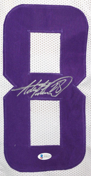 Adrian Peterson Autographed White Pro Style Jersey - Beckett W Auth *8 THIS IS NOT AN NFL JERSEY. THIS HAS NO TAGS, NO LOGOS, NO EMBLEMS. This is a hand autograph of Adrian Peterson on a Custom Made (non name brand) Authentic Style Jersey with stitched letters and numbers. This item has a Beckett Witnessed Authentication, which comes with a numbered and a matching Beckett Certificate of Authenticity. You can view this item on the Beckett Authentication website. It was signed either at a public autograph appearance or a private signing. This is a stock photo of the item. Although you may not receive this exact item, the item you receive is virtually identical and brand new in great shape. Jersey size is XL.