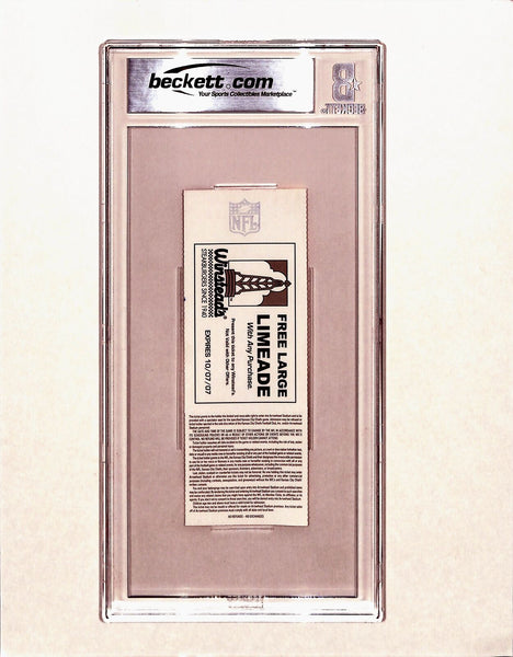 Adrian Peterson Signed Minnesota Vikings 9/23/07 1st TD Slab Ticket BAS 43396 The number in the listing title is just an inventory sku for our records and is not the authentication number. The item pictured is a stock photo unless otherwise noted. This is a Minnesota Vikings Slabbed Ticket Stub dated 09/23/2007 that was personally autographed by Adrian Peterson with "1st TD" inscription. Includes a certificate of authenticity from Beckett Authentication Services (BAS) and Denver Autographs.