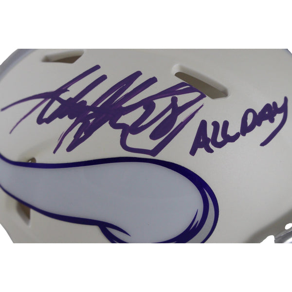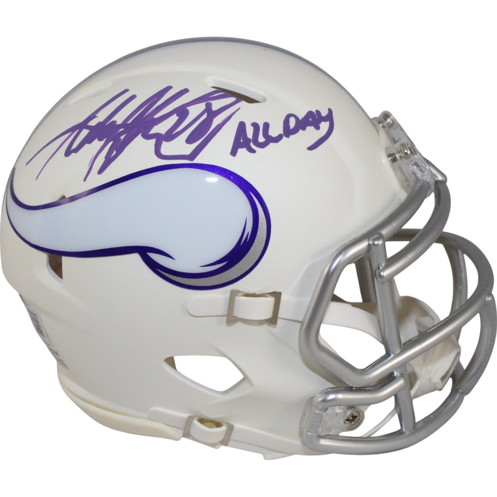The number in the listing title is just an inventory sku for our records and is not the authentication number. The item pictured is a stock photo unless otherwise noted. This is a Minnesota Vikings 2024 Mini Helmet that was personally autographed by Adrian Peterson includes " All Day" inscription. Includes a certificate of authenticity from Beckett Authentication Services (BAS) and Denver Autographs.FREE SHIPPING within the USA on orders over $10!