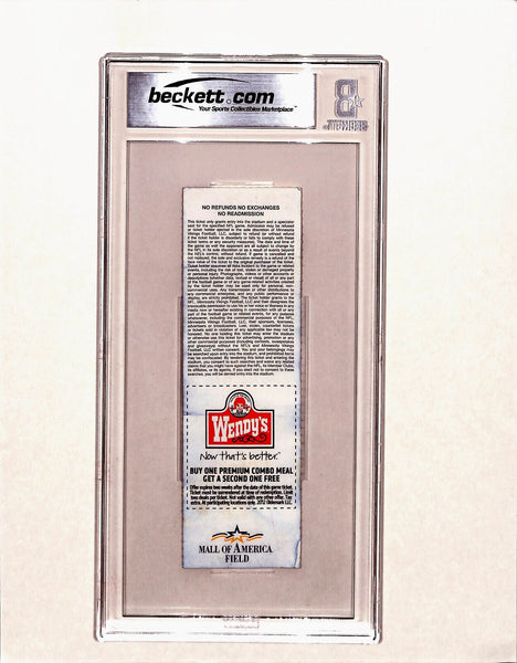 Adrian Peterson Signed Vikings 12/30/12 2097 Yds Slab Ticket Beckett 43403 The number in the listing title is just an inventory sku for our records and is not the authentication number. The item pictured is a stock photo unless otherwise noted. This is a Minnesota Vikings Slabbed Ticket Stub dated 12/30/2012 that was personally autographed by Adrian Peterson with "2097 Yds" inscription. Includes a certificate of authenticity from Beckett Authentication Services (BAS) and Denver Autographs.