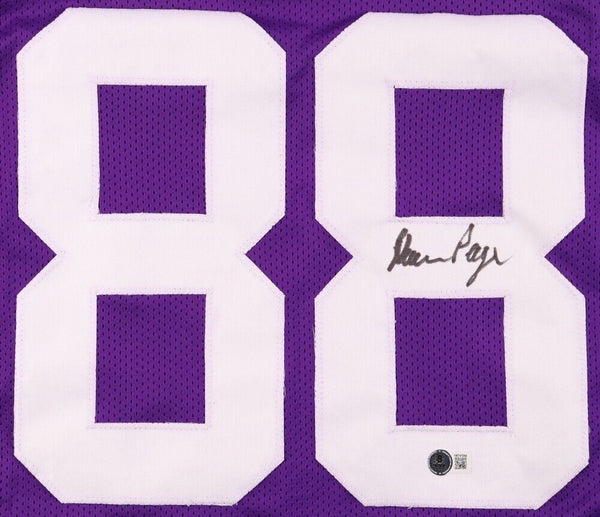 Custom on-field style jersey. Everything sewn on. Size XL. Hand-signed by Alan Page (HOF).The autograph includes an official Beckett Authentication Services serially numbered hologram and QR Code card for authenticity purposes. The signing of this item was witnessed by Beckett.Authentication: Beckett QR Code card