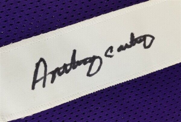 Custom on-field style jersey. Everything is sewn on, size XL. Hand-signed in black felt-tip pen by Anthony Carter. The lot / autograph(s) includes an official Total Sports Enterprises (TSE) hologram and matching COA for authenticity purposes. Authentication: Total Sports Enterprises COA