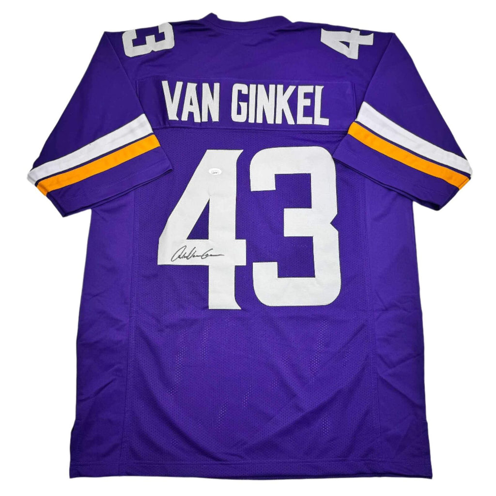 Autographed/Signed Andrew Van Ginkel Minnesota Purple Football Jersey JSA COA Jersey has no brand names or logos. This is a custom jersey and was not manufactured by or in any manner associated with any professional sports league or manufacturer. This custom jersey carries no professional sports league designation. The item is intended to be an autographed collectible. The custom jersey displays the name and number of the player. This item in no way is affiliated with or connected to any professional sports organization. Size is XL.