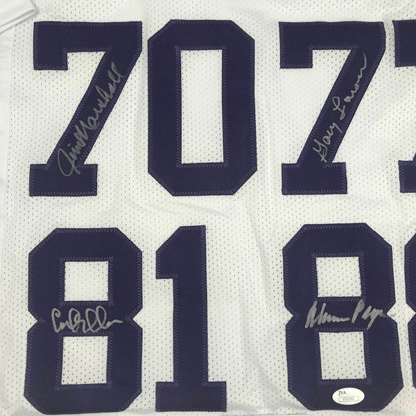 Autographed/Signed PURPLE PEOPLE EATERS Minnesota White Football Jersey JSA COA This is a custom jersey and was not manufactured by or in any manner associated with any professional sports league or manufacturer. This custom jersey carries no professional sports league designation. The item is intended to be an autographed collectible. Reference of team in the title is to allow the purchaser a point of association. The custom jersey displays the name, number and authenticated signature of the player. This item in no way is affiliated with or connected to any professional sports organization. The autograph, as always is guaranteed to be authentic and has been certified as authentic by a third-party, trusted authenticator. Size is XL unless otherwise noted.