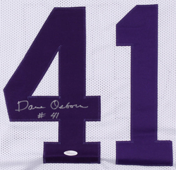 Custom on-field style jersey. Everything sewn on, size XL. Hand-signed in black felt-tip pen by Dave Osborn. The lot / autograph(s) includes an official James Spence Authentication (JSA) hologram and matching COA for authenticity purposes. The signing of this item was witnessed by JSA.Authentication: JSA COA Check out all the items in our Friendly Confines Collectibles store, Thanks for looking.