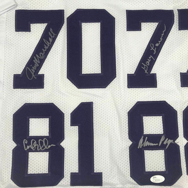 FRAMED Autographed/Signed PURPLE PEOPLE EATERS 33x42 White Jersey JSA COA Auto The item is professionally framed & matted with two 8x10 photos, measures 33"x42" and is ready to be hung in your man cave! NOTE: COA card will be mounted on the back of the frame, not inside it on top of the jersey as seen in the picture. Please allow up to 5 business days for the item to be framed, packaged safely, and picked up by FedEx. Photo and matting requests can be made.