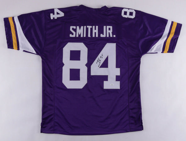 Custom on-field style jersey. Everything is sewn on, size XL. Hand-signed in black felt-tip pen by Irv Smith Jr. The lot / autograph(s) includes an official James Spence Authentication (JSA) hologram and matching COA for authenticity purposes. The signing of this item was witnessed by JSA.Authentication: JSA COA