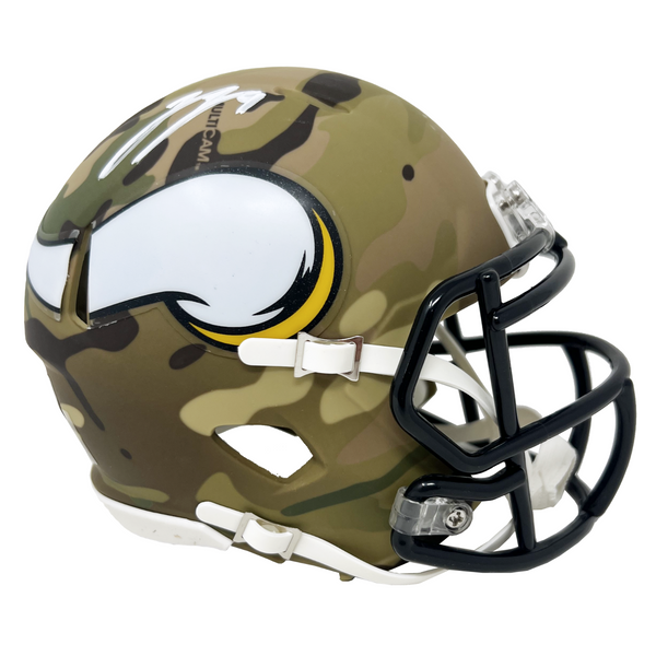 J.J. McCarthy Minnesota Viking Signed Riddell Camo Mini Helmet BAS Beckett
