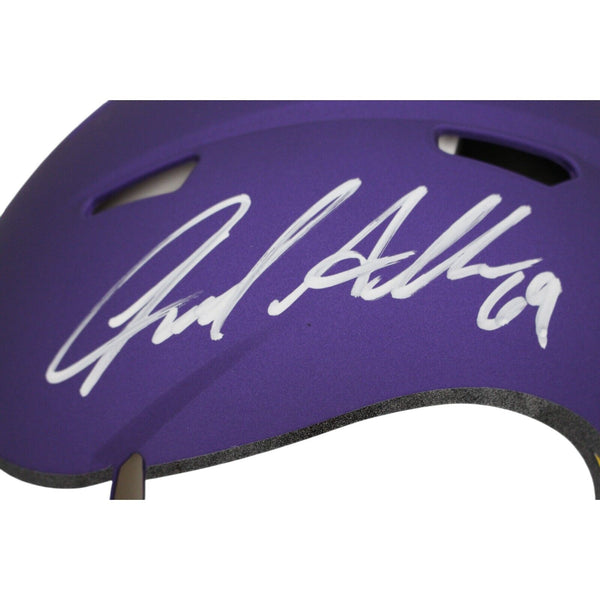 The number in the listing title is just an inventory sku for our records and is not the authentication number. The item pictured is a stock photo unless otherwise noted. This is a Minnesota Vikings Full Size Authentic Speed Helmet that was personally autographed by Jared Allen. Includes a certificate of authenticity from Beckett Authentication Services (BAS) and Denver Autographs.