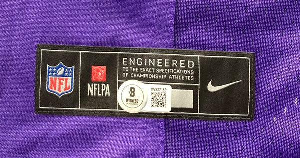 Featured is a JJ McCarthy signed Minnesota Vikings Nike Game replica jersey. This jersey has been hand signed by McCarthy and comes with the Beckett hologram and certificate of authenticity. Jersey size may vary. This jersey would make a great addition to any sports memorabilia collection! SPECIFICATIONS Autographed By: JJ McCarthy Team: Minnesota Vikings Sport: Football Authentication: Beckett Grading Services