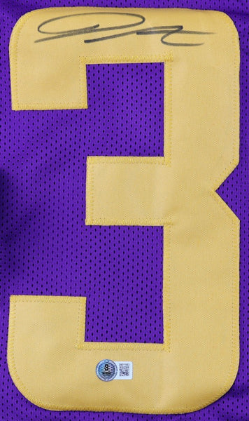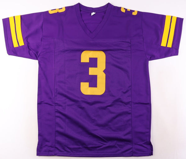 Custom on-field style jersey. Everything is sewn on, size Adult XL. Hand-signed in silver paint pen by Jordan Addison.The autograph includes an official Beckett Authentication Services serially numbered hologram and QR Code Card for authenticity purposes. The signing of this item was witnessed by Beckett.Authentication: Beckett Hologram with QR Code Card