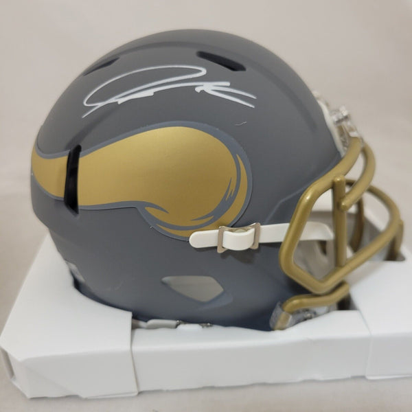 JORDAN ADDISON SIGNED MINNESOTA VIKINGS SLATE SPEED MINI HELMET BECKETT QR