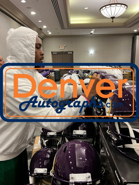 The number in the listing title is just an inventory sku for our records and is not the authentication number. The item pictured is a stock photo unless otherwise noted. This is a Minnesota Vikings Full Size Replica Throwback 1983-2001 Helmet that was personally autographed by Justin Jefferson. Includes a certificate of authenticity from Beckett Authentication Services (BAS) and Denver Autographs. FREE SHIPPING within the USA on orders over $10!