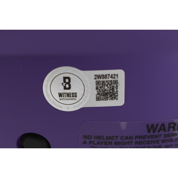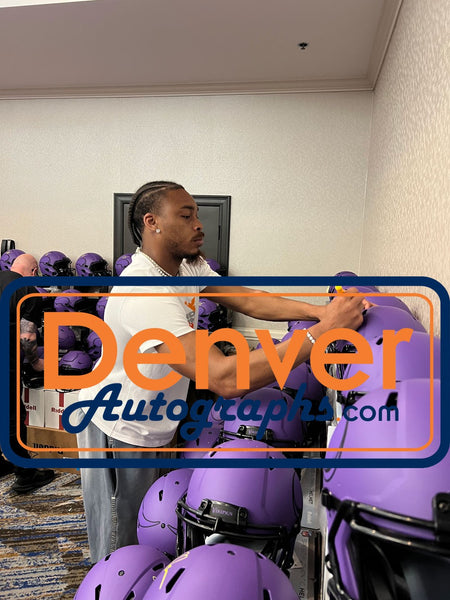 The number in the listing title is just an inventory sku for our records and is not the authentication number. The item pictured is a stock photo unless otherwise noted. This is a Minnesota Vikings Full Size Authentic Rave Helmet that was personally autographed by Justin Jefferson. Includes a certificate of authenticity from Beckett Authentication Services (BAS) and Denver Autographs.