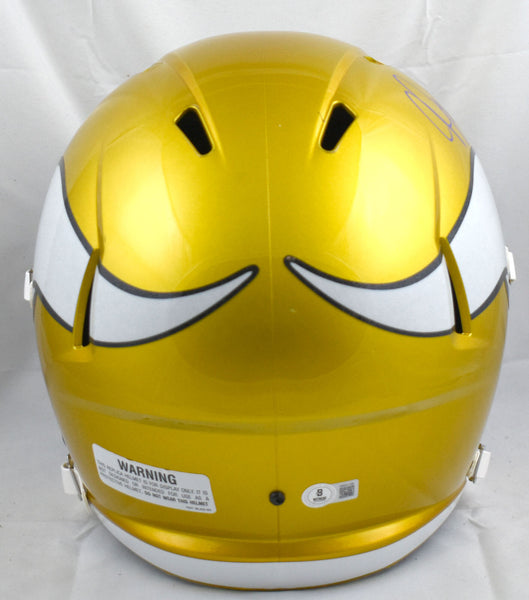 This is a Justin Jefferson hand autographed Riddell football Full Size Flash Speed Replica helmet. This item has a Beckett Witnessed Authentication, which comes with a numbered sticker hologram and a QR code for verification. You can view this item on the Beckett Authentication website, it shows when and where the item was signed. It was signed either at a public autograph appearance or a private signing. This is a stock photo of the item. Although you may not receive this exact item, the item you receive is virtually identical, brand new, and in great shape. This is a Justin Jefferson hand autographed Riddell football full size Flash Speed Replica helmet. This item has a Beckett Witnessed Authentication, which comes with a numbered sticker hologram and a QR code for verification. You can view this item on the Beckett Authentication website, it shows when and where the item was signed. It was signed either at a public autograph appearance or a private signing. This is a stock photo of the item. Although you may not receive this exact item, the item you receive is virtually identical, brand new, and in great shape.
