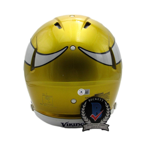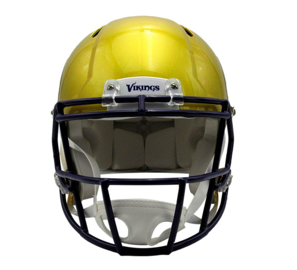 Justin jefferson signed/autographed minnesota vikings full size gold flash authentic football helmet. this helmet is authenticated by beckett witnessed and includes their tamper-proof hologram sticker.
