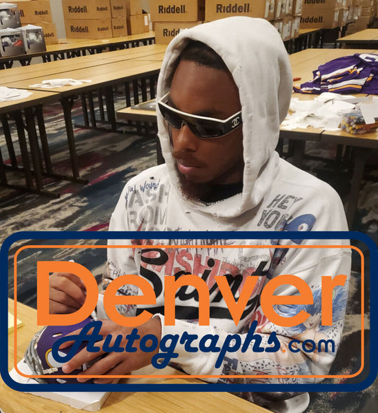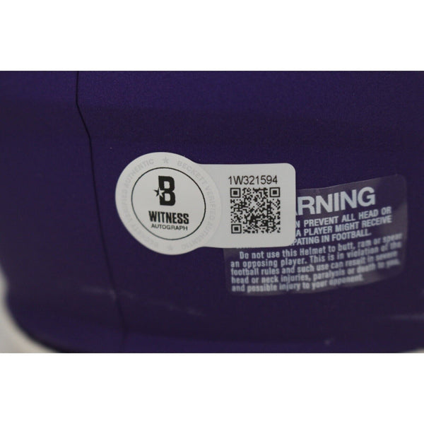 The number in the listing title is just an inventory sku for our records and is not the authentication number. The item pictured is a stock photo unless otherwise noted. This is a Minnesota Vikings Tribute Mini Helmet that was personally autographed by Justin Jefferson. Includes a certificate of authenticity from Beckett Authentication Services (BAS) and Denver Autographs.