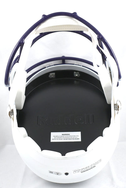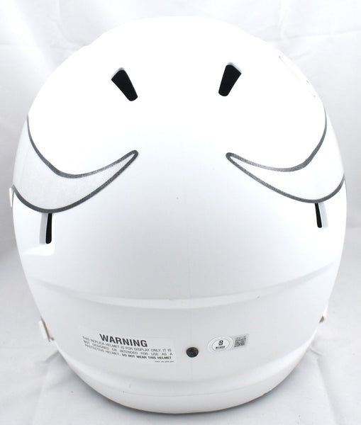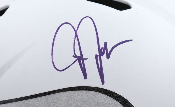 This is a Justin Jefferson hand autographed Riddell football Full Size Flat White Speed Replica helmet. This item has a Beckett Witnessed Authentication, which comes with a numbered hologram and a QR code for verification. You can view this item on the Beckett Authentication website, it shows when and where the item was signed. It was signed either at a public autograph appearance or a private signing. This is a stock photo of the item. Although you may not receive this exact item, the item you receive is virtually identical, brand new, and in great shape. This is a Justin Jefferson hand autographed Riddell football full size Flat White Speed Replica helmet. This item has a Beckett Witnessed Authentication, which comes with a numbered hologram and a QR code for verification. You can view this item on the Beckett Authentication website, it shows when and where the item was signed. It was signed either at a public autograph appearance or a private signing. This is a stock photo of the item. Although you may not receive this exact item, the item you receive is virtually identical, brand new, and in great shape.