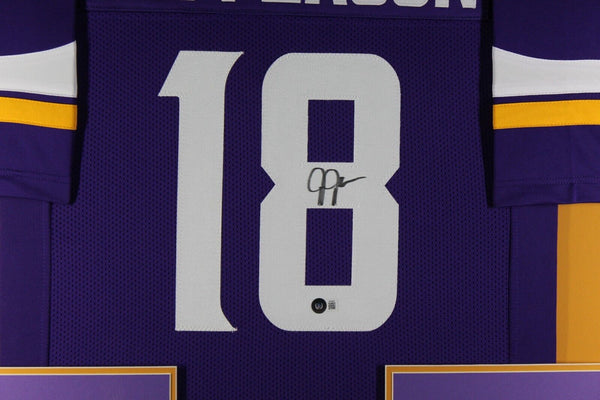 JUSTIN JEFFERSON AUTOGRAPHED & PROFESSIONALLY FRAMED PRO-STYLE JERSEY(Occasionally our own stock pictures are used at times due to quantity of framing, all frames will look identical as the one pictured)THE FRAMED JERSEY MEASURES 35"x 44" & COMES WITH THE FOLLOWING:-UV Protected Acrylic-Triple Acid Free Team Colored Matting-2 High Quality 8"x10" Photos-Team LogoEvery framed autographed jersey is accompanied with a tamper-proof hologram on the signed part of the jersey from one of the main authenticators in the industry (JSA, Beckett, PSA, etc.) and can be verified on their corresponding websites to prove authenticity.ATTENTION:If there's any damage during shipping then please message us immediately and save the box!DO NOT OPEN A RETURN OR DISPUTE PLEASE!We will provide a return label to send the frame back so we can fix any issues right away and ship it right back to you, free of charge of course!WE DO NOT OFFER PARTIAL REFUNDS TO FIX LOCALLY AS EVERYTHING IS FRAMED/FIXED IN HOUSE- Thank you -
