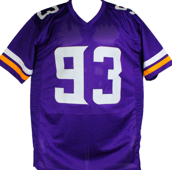 Patrick Jones Autographed Purple Pro Style Jersey- Beckett W Hologram *Black THIS IS NOT AN NFL JERSEY. THIS HAS NO TAGS, NO LOGOS, NO EMBLEMS. This is a Patrick Jones of the Minnesota Vikings hand autographed custom made (Non Name Brand) authentic style (Stitched Letters and Numbers) jersey. This item has a Beckett Authentication, which comes with a numbered hologram and a generic Certificate of Authenticity. You can view this item on the Beckett website. It was signed either at a public autograph appearance or a private signing. This is a stock photo of the item. Although you may not receive this exact item, the item you receive is virtually identical, brand new, and in great shape. Jersey size is XL. .