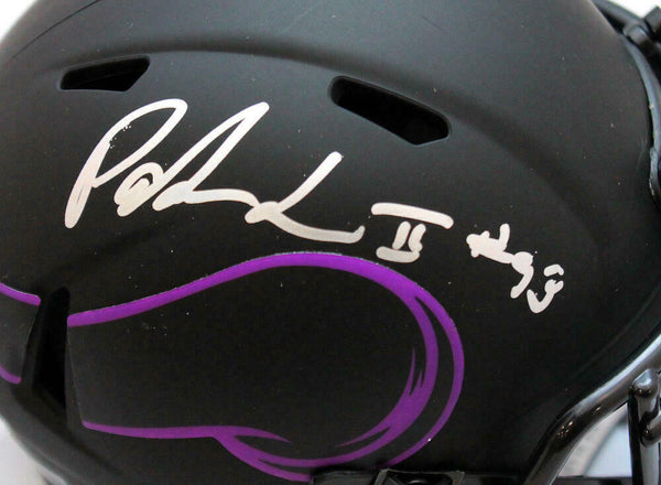 Patrick Jones Autographed Minnesota Vikings Eclipse Speed Mini Helmet- Beckett W Holo *Silver This is a hand autographed Mini Helmet of Patrick Jones of the Minnesota Vikings. This is a Riddell Football Eclipse Speed Mini Helmet. This item has a Beckett Witnessed Authentication, which comes with a numbered hologram and a generic Beckett Certificate of Authenticity. You can view this item on the Beckett Authentication website. It was signed either at a public autograph appearance or a private signing. This is a stock photo of the item. Although you may not receive this exact item, the item you receive is virtually identical and brand new in great shape.
