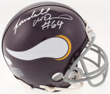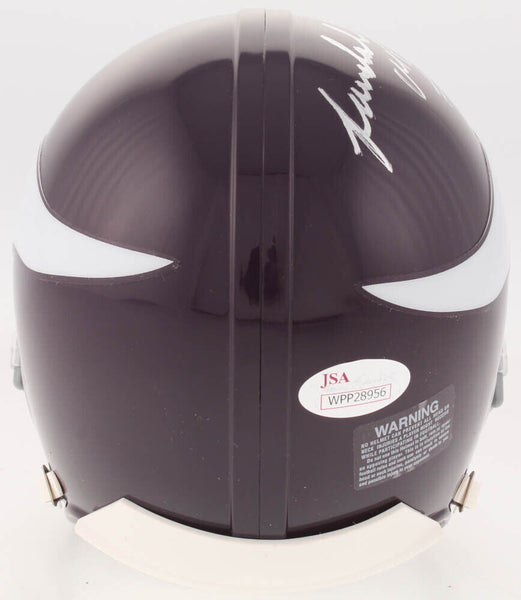 Riddell Minnesota Vikings mini helmet. Hand-signed in silver paint pen by Randall McDaniel (HOF). The lot / autograph(s) includes an official James Spence Authentication (JSA) hologram and matching COA for authenticity purposes. The signing of this item was witnessed by JSA.Authentication: JSA COA