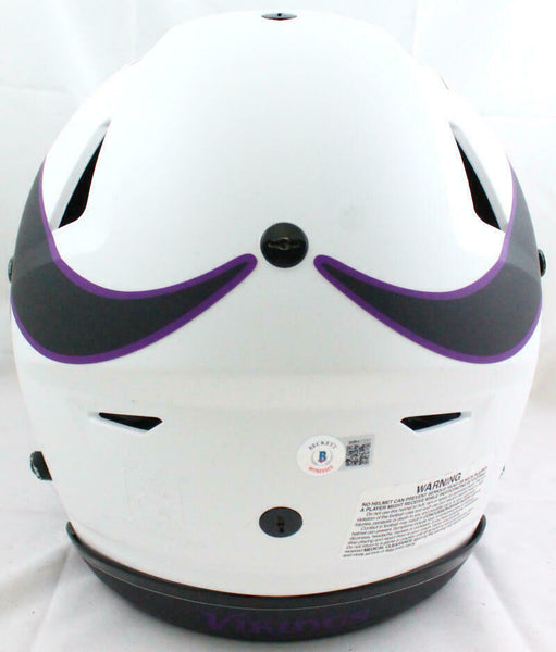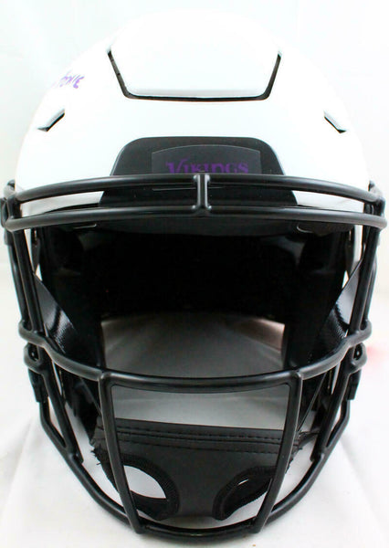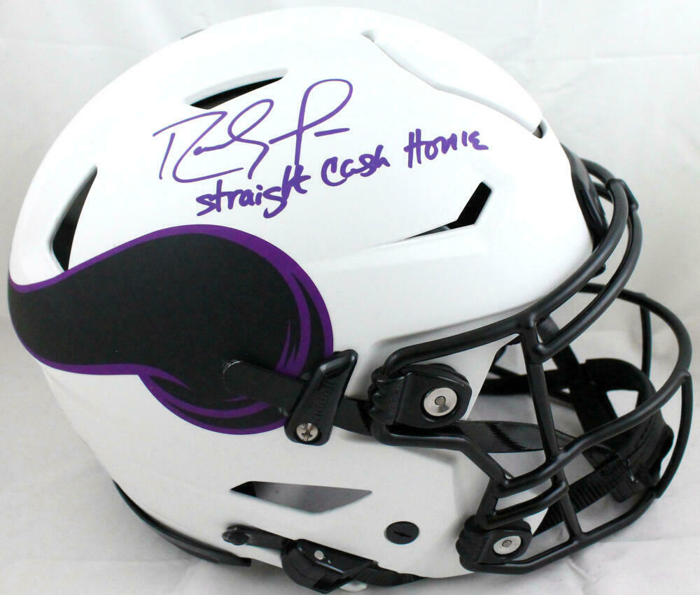 Randy Moss Autographed Vikings F/S Lunar SpeedFlex Helmet W/SCH-Beckett W Hologram *Purple This is a hand autographed Helmet of Randy Moss of the Minnesota Vikings on a Riddell Football Full Size Lunar SpeedFlex Authentic Helmet. Inscribed Straight Cash Homie. This item has a Beckett Authentication, which comes with a Beckett numbered sticker hologram and a QR code for verification. You can view this item on the Beckett Authentication website, it shows when and where the item was signed. It was signed either at a public autograph appearance or a private signing. This is a stock photo of the item. Although you may not receive this exact item, the item you receive is virtually identical and brand new in great shape.