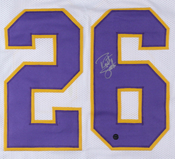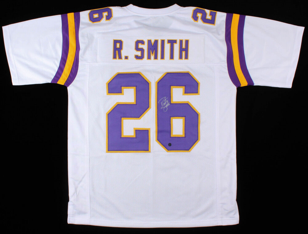 Custom on-field style jersey. Everything is sewn on, size XL. Hand-signed in silver paint pen by Robert Smith. The lot / autograph(s) includes an official Robert Smith player hologram for authenticity purposes.Authentication: Smith Hologram