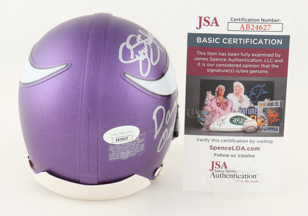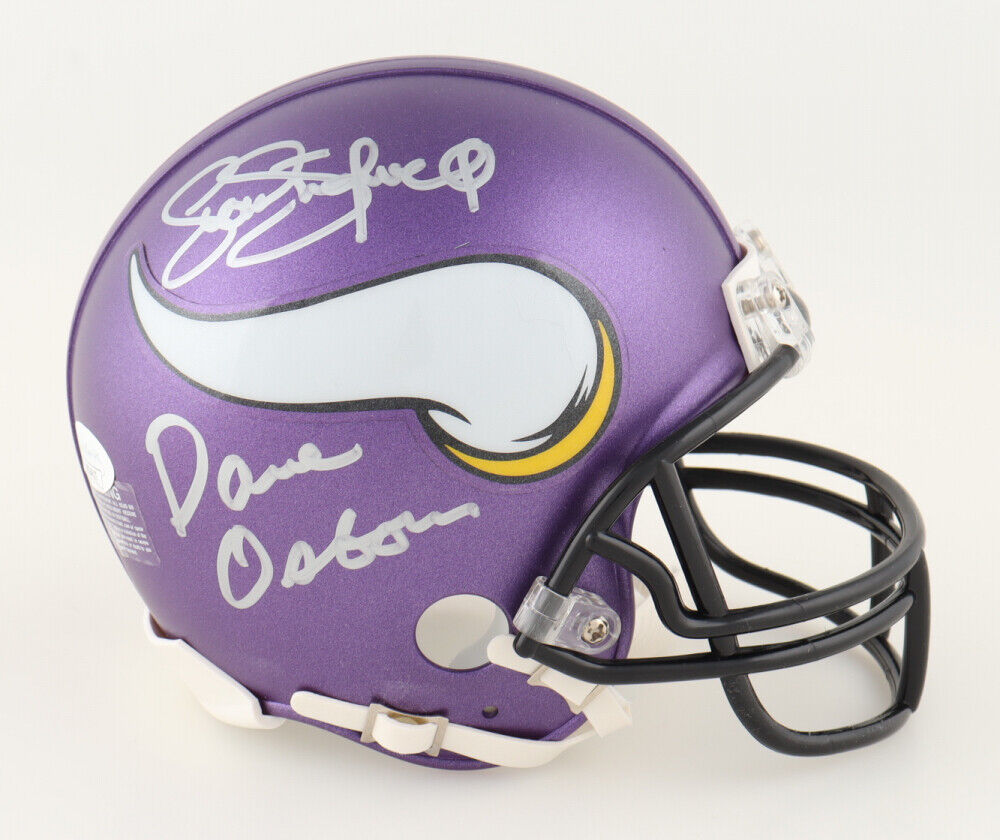 Riddell Minnesota Vikings mini helmet. Hand-signed by Scott Studwell and Dave Osborn.The lot / autograph(s) includes an official James Spence Authentication (JSA) hologram and matching COA for authenticity purposes.Authentication: JSA COA