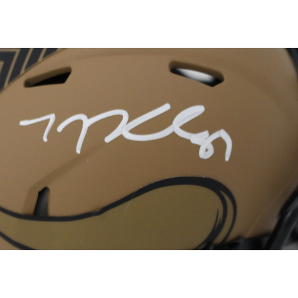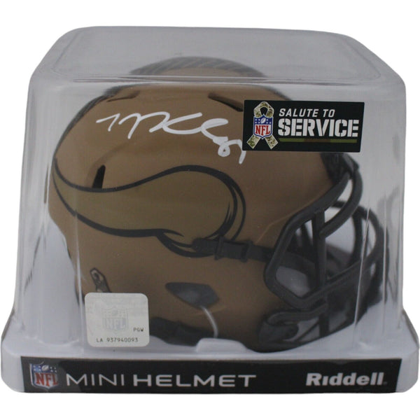 The number in the listing title is just an inventory sku for our records and is not the authentication number. The item pictured is the exact item you will receive, please see photos for condition. This is a Minnesota Vikings 2023 Salute to Service Mini Helmet that was personally autographed by TJ Hockenson. Includes a certificate of authenticity from Beckett Authentication Services (BAS) and Denver Autographs.