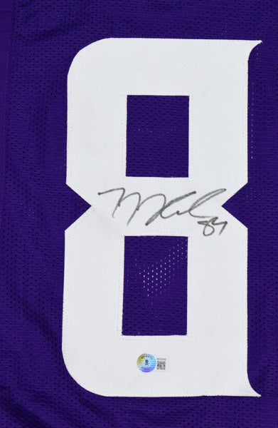 TJ Hockenson Autographed Purple Pro Style Jersey - Beckett W Hologram *Black THIS IS NOT AN NFL JERSEY. THIS HAS NO TAGS, NO LOGOS, NO EMBLEMS. This is a TJ Hockenson of the Minnesota Vikings hand autographed custom made (non name brand) authentic style (stitched letters and numbers) jersey. This item has a Beckett Witnessed Authentication, which comes with a numbered hologram and a QR code for verification. You can view this item on the Beckett Authentication website and it shows when and where the item was signed. It was signed either at a public autograph appearance or a private signing. This is a stock photo of the item. Although you may not receive this exact item, the item you receive is virtually identical, brand new, and in great shape. Jersey size is XL.