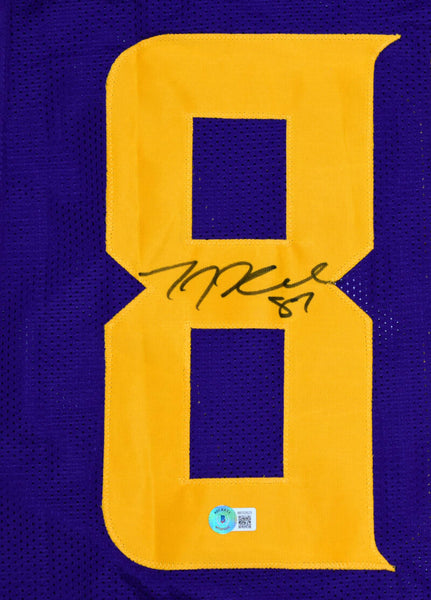 TJ Hockenson Autographed Purple w/ Yellow Pro Style Jersey - Beckett W Hologram *Black THIS IS NOT AN NFL JERSEY. THIS HAS NO TAGS, NO LOGOS, NO EMBLEMS. This is a TJ Hockenson of the Minnesota Vikings hand autographed custom made (non name brand) authentic style (stitched letters and numbers) jersey. This item has a Beckett Witnessed Authentication, which comes with a numbered hologram and a QR code for verification. You can view this item on the Beckett Authentication website and it shows when and where the item was signed. It was signed either at a public autograph appearance or a private signing. This is a stock photo of the item. Although you may not receive this exact item, the item you receive is virtually identical, brand new, and in great shape. Jersey size is XL.