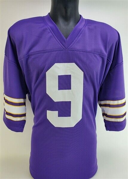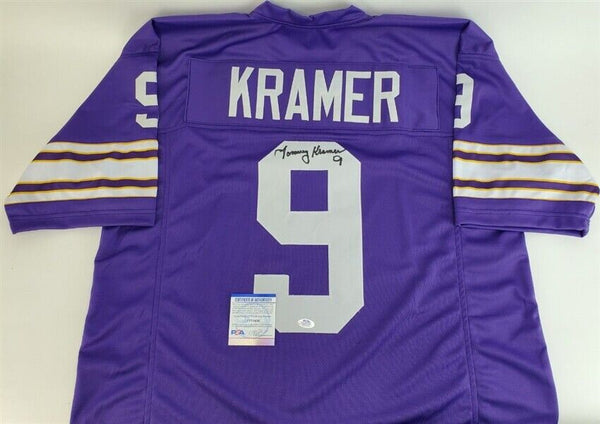 This autographed jersey has been personally hand-signed by Tommy Kramer of the Minnesota Vikings. This autograph is certified by PSA/DNA's (Professional Sports Authenticators) In the Presence authentication. That means that a PSA representative was present when this item was signed. It comes with the PSA numbered hologram and matching Certificate of Authenticity.Custom on-field style jerseys are a more affordable option for autograph seekers. These jerseys do not have any brand name or tags and are made in the Philippines. They feature stitched on names and numbers and are made to look very similar to the on-field jerseys that the players wear. These custom jerseys are very commonly used in the memorabilia industry.