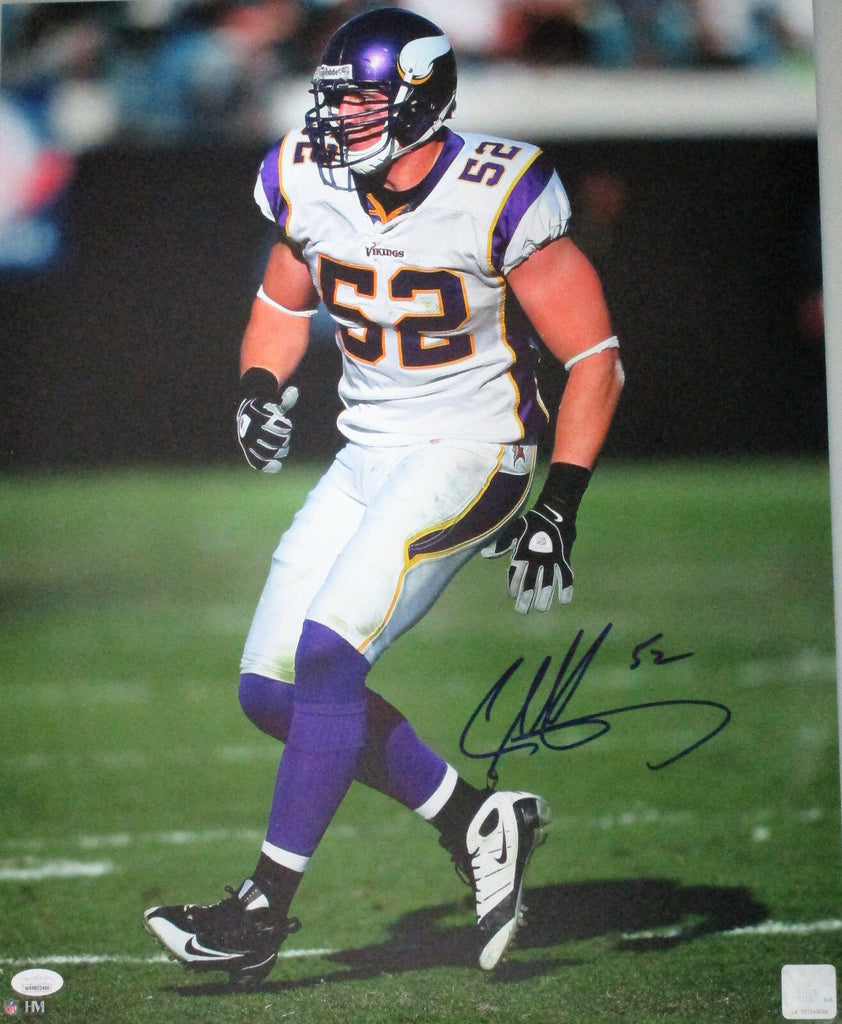 A 16x20 hand signed photo of former Minnesota Vikings Linebacker CHAD GREENWAY. The signature is in Blue Sharpie. This would make a great addition to any Vikings collection. This photo was signed at a private signing with us. This item is guaranteed to be 100% authentic and will include a COA from JSA authentication.