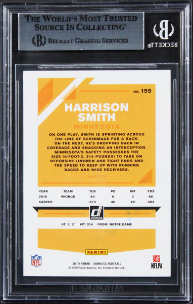 This Autographed 2019 Donruss #159 Card has been Personally Signed by Harrison Smith of the Minnesota Vikings. This item is 100% Authentic, it comes slabbed and authenticated by Beckett Authentication Services. The authenticity can be verified on Beckett Authentication Services website.
