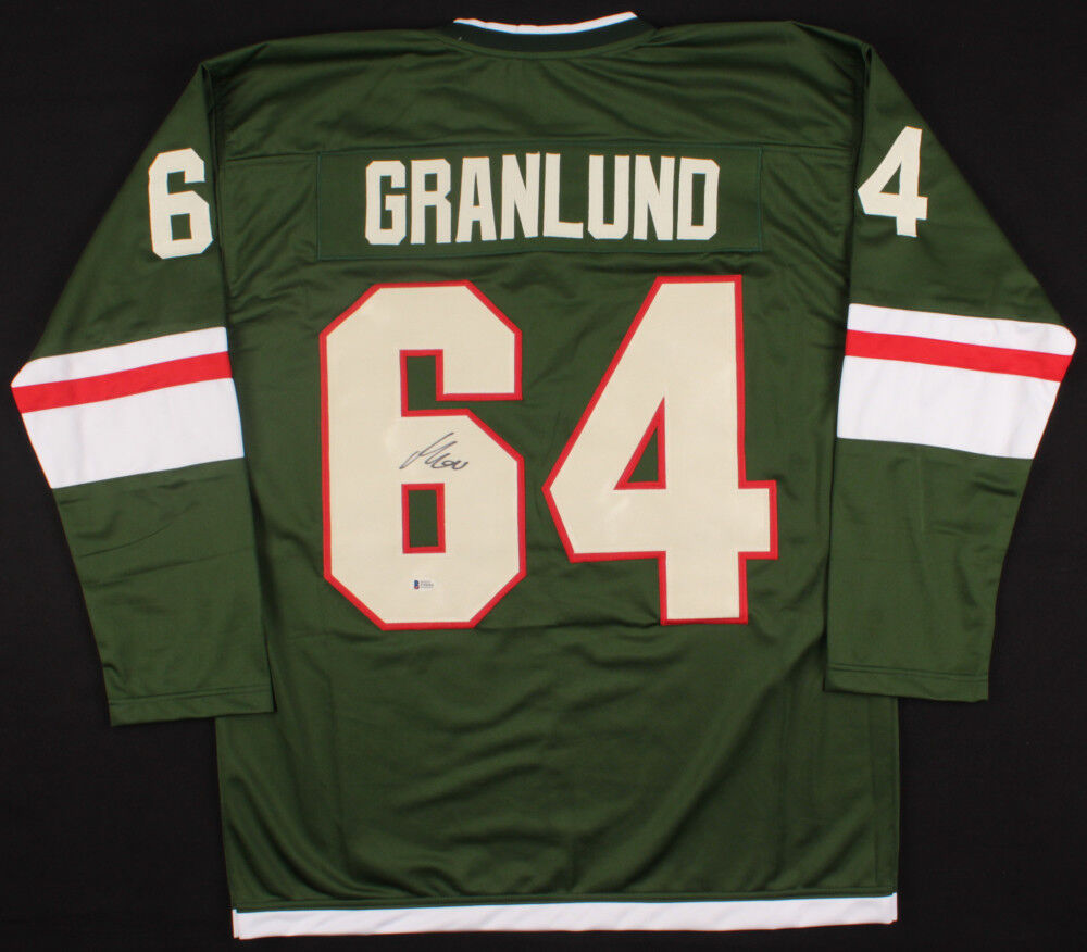 Custom on-ice style jersey. Everything is sewn on, size XL. Hand-signed in black felt-tip pen by Mikael Granlund. The lot / autograph(s) includes an official Beckett Authentication Services serially numbered hologram and matching COA for authenticity purposes.Authentication: Beckett COA