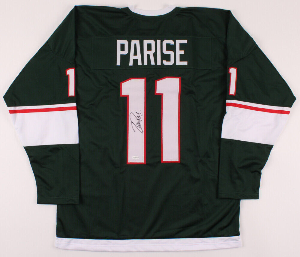 Custom on-ice style jersey. Everything is sewn on, size XL. Hand-signed in black felt-tip pen by Zach Parise. The lot / autograph(s) includes an official Total Sports Enterprises (TSE) hologram and matching COA for authenticity purposes. Authentication: Total Sports Enterprises COA