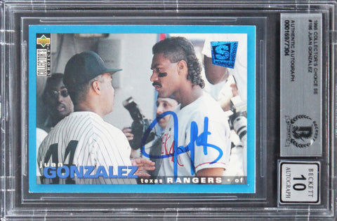 Rangers Juan Gonzalez Signed 1995 Collector's Choice #186 Card Auto 10! BAS Slab