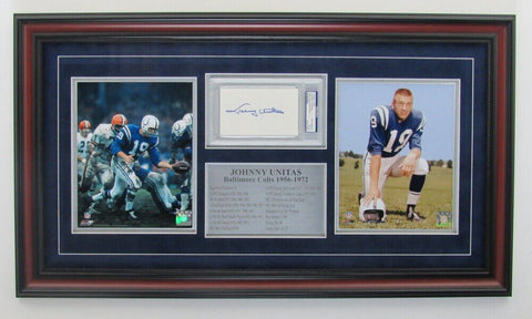 Johnny Unitas Signed Baltimore Colts 18x32 Framed Cut Display (PSA) Died 2002 QB