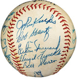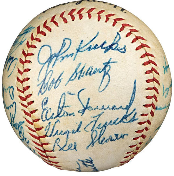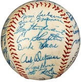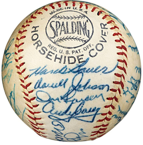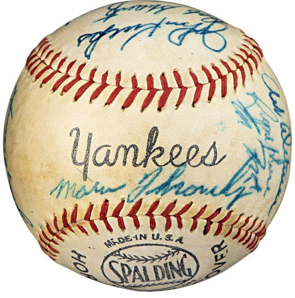 Featured is a 1958 New York Yankees team signed Spalding baseball. Most notable on this ball are Yogi Berra, Whitey Ford, Elston Howard, Hank Bauer, Don Larsen, Tony Kubek, Bill Skowron, and Enos Slaughter. The Mickey Mantle signature on this ball has been deemed a clubhouse version. This ball comes with the PSA hologram and letter of authenticity. This ball would make a great addition to any sports memorabilia collection!. SPECIFICATIONS Autographed By: Team: New York Yankees Sport: Baseball Authentication: Professional Sports Authenticator (PSA)